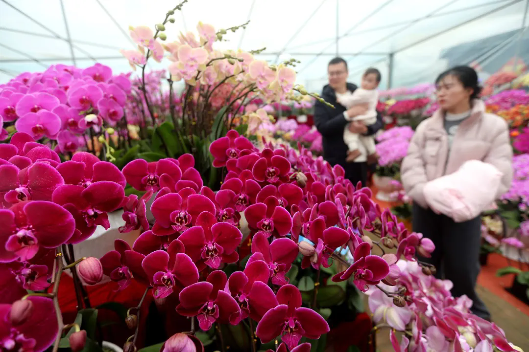 2月1日,市民在江苏省连云港市一家花卉市场挑选年宵花。王春摄(中经视觉)